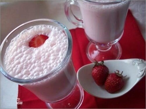 Этот восхитительный клубничный коктейль прекрасно освежает в летнюю жару. К тому же он очень полезный и питательный. Перед приготовлением коктейля дайте мороженому размягчиться при комнатной температуре в течение примерно 10 минут. Этот коктейль вы можете приготовить и без мороженого – главное, взять молоко похолоднее.