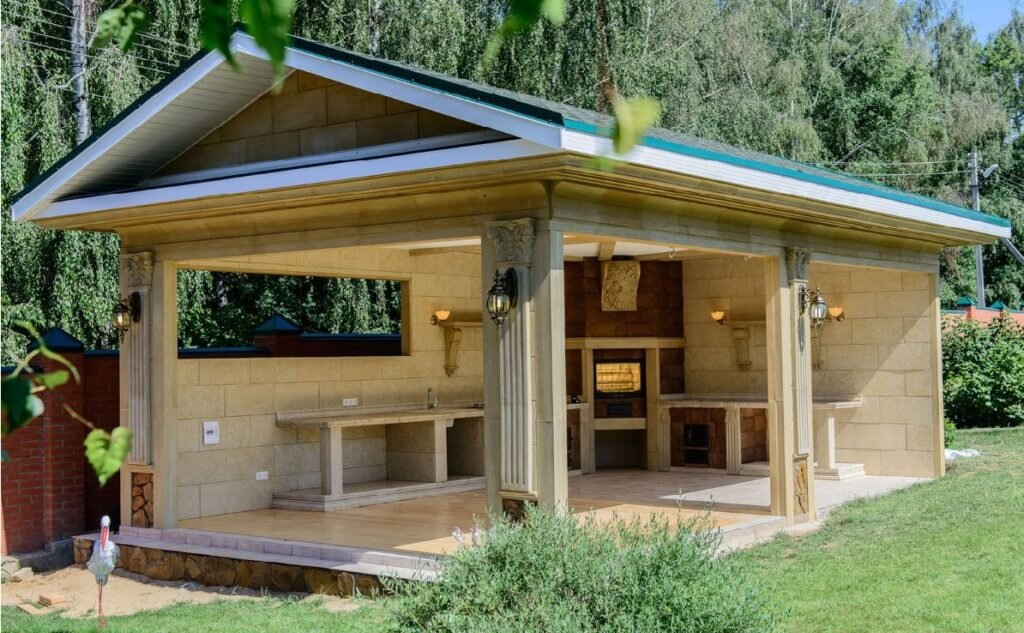 В зависимости от сезонности беседки ее проемы могут быть открытыми полностью-частично или закрытыми. Последний вариант по умолчанию приветствует отделку стен. Назначение отделки Это только на первый взгляд кажется, что беседка является исключительно летним дачным укрытием. Со временем тематическую конструкцию всегда хочется дополнить отделкой, которая способствует: Поэтому отделку не стоит недооценивать. Вместе с ней беседка пригодна для отдыха в любое время года. Современные беседки бывают каркасными и цельными. Последние – бревенчатые и кирпичные конструкции. Они отделываются преимущественно изнутри, т.к. фасад не требует дополнительной защиты и обрамления. Что касается каркасных сооружений, то их несущий профиль рекомендуется обшивать с двух сторон. Выбор отделки При выборе отделочного материала для беседки важно обращать внимание на его вес и происхождение. Ведь тематическая конструкция бывает разных стилей и не требует дополнительной нагрузки. Поэтому беседку преимущественно обшив