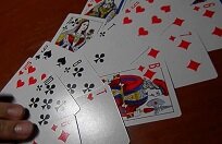Возьмите колоду из 36 карт. Выберите из колоды 4 королей и на каждого загадайте мужчину, который Вам интересен. Выложите королей в ряд, картинками вверх. Оставшиеся 32 карты тщательно перетасуйте и начните раскладывать картинками вверх по одной под каждого короля слева направо. Таким образом, у Вас получится 4 вертикальных ряда по 8 карт в каждом (короли не считаются). Когда все карты будут разложены, посмотрите внимательно на каждый вертикальный ряд: есть ли в нем парные карты одинакового достоинства, например, 2 десятки, 2 туза и т.д. Масть значения не имеет. Парными являются карты, лежащие рядом друг с другом, а также первая и последняя карты в ряду. К примеру, если между двумя десятками лежит другая карта, то такие десятки парными не считаются.
