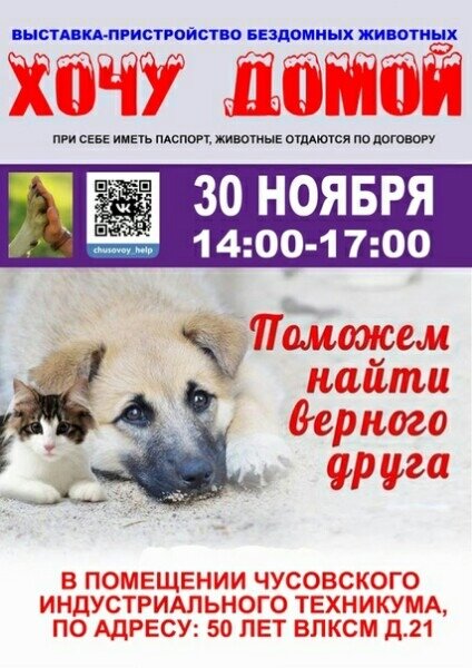 ВЫСТАВКА НАШИХ ПИТОМЦЕВ 30 ноября состоялась очередная выставка-пристройство наших питомцев, как оказалось, юбилейная, десятая. И хоть никто из наших подопечных дома не обрел, только трое котят, которые пришли гостями к нам на выставку, но все равно - мы не расстроены. Радует то, что чусовляне с удовольствием приходят на наши мероприятия, ждут их, хотят просто пообщаться, получить радость от общения с животными, приезжают коллеги - волонтеры из Лысьвы, бывает много детей, молодежи - юные волонтеры помогают на выставках с животными. Приятно видеть добрые и светлые лица детей, их родителей, бабушек и дедушек, в такие минуты становится особенно ясно, что ничего не пропало, что мир остался прежним - люди способны на добрые поступки, их сердца открыты для любви и милосердия. Ну и наши питомцы не отставали, получали удовольствие от выставки не меньше людей. Патрик пел: Тибет молчал.. Кто-то просто отдыхал Кто на лавочке сидел, кто на улицу глядел... Не скоро еще пос