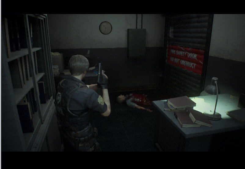 Итак, мне нужно вернуться в холл. Не успел я отойти от происшедшего с офицером, лежащим у моих ног, как мне наглядно продемонстрировали смысл фразы "шумит так, что мертвого поднимет". В дверь постучали, а после, не дожидаясь ответа, в комнату вломился мертвец. На нем была полицейская форма и он был один из той кучи трупов, которую я преодолел в соседнем помещении. Видать мы с офицером его разбудили. Надо быть аккуратнее проходя мимо них в дальнейшем. 2 выстрела в голову хватило, чтобы отправить его к праотцам, хотя бы на время. Проверять поднимется он снова или нет я не стал, а поторопился убраться отсюда и закрыл дверь. Выскочив из помещения я осмотрелся не поднимаются ли остальные "ребята". Вроде нет, но за окном возникло какое-то движение, а через секунду стекло разлетелось, а внутрь завалился очередной урод. У меня осталось всего 6 патронов и я решил, что лучше будет ретироваться, всё равно они медлительные. Оставив мертвеца позади я ускорился по уже пройденному маршруту. Вперед
