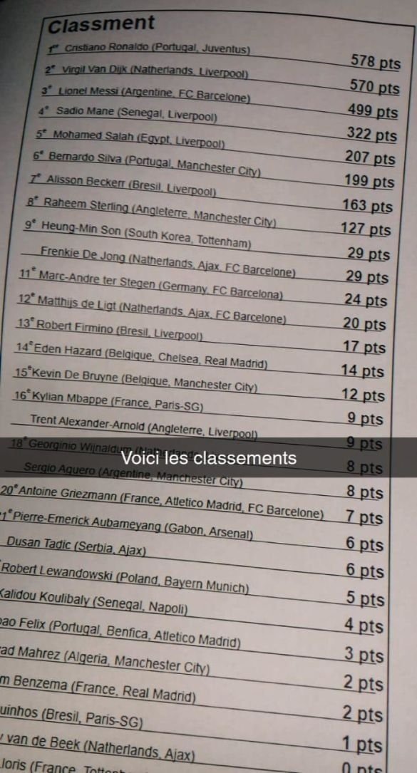 Многие опять будут думать что "золотой мяч" заберет Лионель Месси, но результаты голосования показывает другие данные, и Месси на третьем месте. Лучшим футболистом 2019 года является нападающий "Ювентуса" Криштиано Роналду, у которого 578 очков. На второй строчке расположился защитник "Ливерпуля" Вирджил ван Дейк 570 очков. На третьем месте всеми любимый "король футбола" Лионель Месси 499 очков. Подписывайтесь на наш канал, и любите футбол!