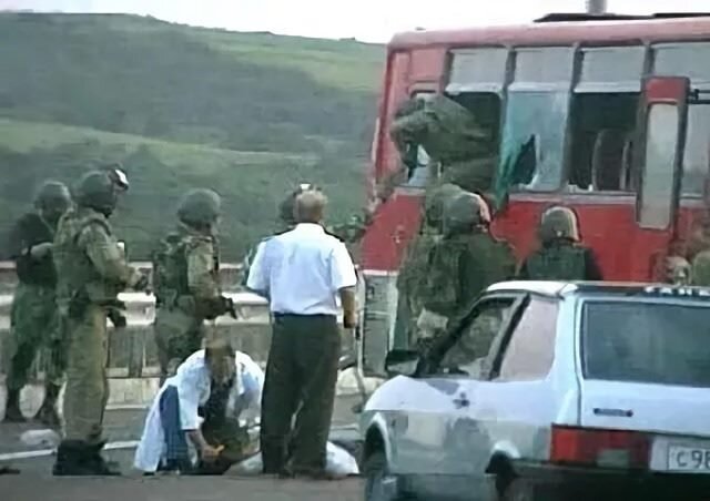 На месте погибли две женщины и террорист. Ещё одна женщина и 14-летняя девочка скончались в больнице. Пострадали несколько заложников, пять бойцов СОБРа и три сотрудника спецподразделения МВД «Вега». Я помню раненные тела и оторванные конечности.