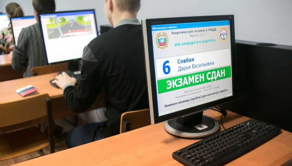 Экзамены делятся на три этапа: теоретический и два практических (автодром и город). Готовые билеты отсутствуют и формируются динамически непосредственно перед экзаменом. Все экзаменационные вопросы разделены на 4 общие группы, состоящие из тематических блоков. Каждый тематический блок содержит 5 вопросов. Вопросы содержат от 2 до 5 вариантов ответов, из которых только один ответ верный. Билет формируется из 4 блоков по 5 вопросов из каждой группы. На проведение экзамена отводится 20 минут для ответов на вопросы из основных блоков и дополнительно по 5 минут на каждый блок из дополнительных вопросов. Блок из дополнительных состоит также из 5 вопросов и предоставляется кандидату в случае допущения ошибки в блоке определенной группы. Кандидатом в водители может самостоятельно выбирать последовательность ответов. То есть можно пропустить вопрос и в любое время экзамена вернуться к нему. Информацию о правильности ответов можно получить только после окончания экзамена. Экзамен сдан при пр