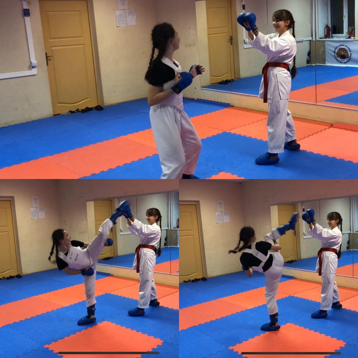 В карате wkf очень важны такие качества, как реакция, скорость и быстрота принятия решений в бою. Так же необходимо правильно и в нужный момент нанести удар. Если у вас в арсенале есть хотя бы такие удары, как: 1. Гьяко цуки (про это можете прочитать в этой статье >> https://vk.cc/a2wRqD) 2. Кизами цуки (статья >>> https://vk.cc/a5EowX ) 3. Маваши гери (вот статья как нужно выполнять этот удар>>> https://vk.cc/a316iM) 4. Ура маваши гери (статья >>> https://vk.cc/a2x0Zh) То можно приступать к тренировкам, приближённым к соревнованиям. Как развить скорость я уже писал (вот статья >>> https://vk.cc/a4dC7W). Про тренировку реакции в малом возрасте (Вот статья >> https://vk.cc/a30Yq0) она очень вам поможет соображать быстрее в будущем. ______________________________________________________________________________ Сегодня я покажу вам упражнения для развития реакции и быстрого принятия решений в бою по карате wkf. 1. Спортсмены встают по парам. Первый ставит накладки себе на тело (зона