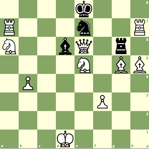 Судя по всему, играет черными очень слабый игрок, начинающий. Поэтому посмотрев на эту ситуацию, становится за него страшно: все фигуры белых наступают по всем фронтам. Конечно, ситуация постановочная, но все равно, решите задачку: Представим, что у нас блиц, время истекает через 15 секунд, у нас 1 ход в запасе: не успели поставить мат - проиграли. _______________ _____________________ Ну как Вам задачка? Смогли найти решение? Уверен: смогли. Пишите в комментариях свои варианты (а он тут один всего), а также время решения. Подписывайтесь (если до сих пор не подписаны)