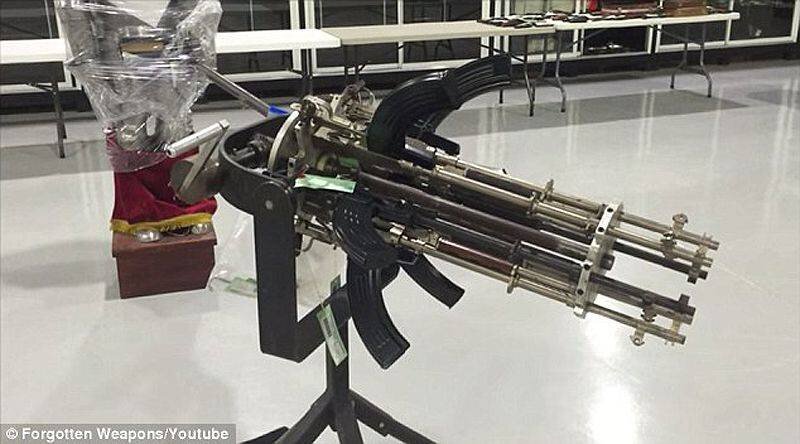 эта пушка сделанной из 6 винтовок и скс от советского образца, спаренных между собой.стреляет эта штуковина быстро и точно.один раз нажал на спусковой крючок 6 дырок в теле. Того кто задумал покуситься на твое жилье.однако его создателя греха подальше продал свое детище на аукционе за 3 с половиной тысячи долларов.