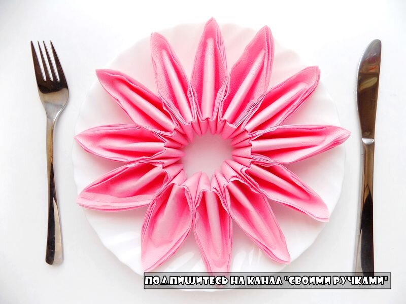Для украшения стола наиболее часто используют сервировочные салфетки, которые складывают определенным образом. Но есть и другой вариант создания декора – мы предлагаем сделать его из нескольких бумажных салфеток по нашему мастер-классу. Фото 1.