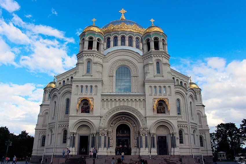 Доминантой города Кронштадта, его основной достопримечательностью, да что уж там - его душой является Никольский Морской собор. Главный морской собор страны был построен во многом благодаря Иоанну Кронштадтскому, которого почитали и цари, и простые жители. На создание такого большого и красивого собора требовалось около 2000000 рублей. Средства на строительство Морского собора собирали буквально всем миром, так как в казне денег не хватало, а сумма эта по тем временам была немалая! Собор заложили в 1903 году, строительство длилось ровно 10 лет. И вот в 1913 году храм освятили в честь святого Николая Чудотворца - покровителя всех путешественников и мореплавателей. Но не долго проводились в храме Богослужения, в 1917 году на страну обрушилась Первая мировая война. Собор был закрыт и варварски разграблен в первый же год советской власти. Колокола и кресты были сброшены, иконы разворованы, а в самом здании собора устроили кинотеатр имени Максима Горького. И только в XXI веке Никольский Мо