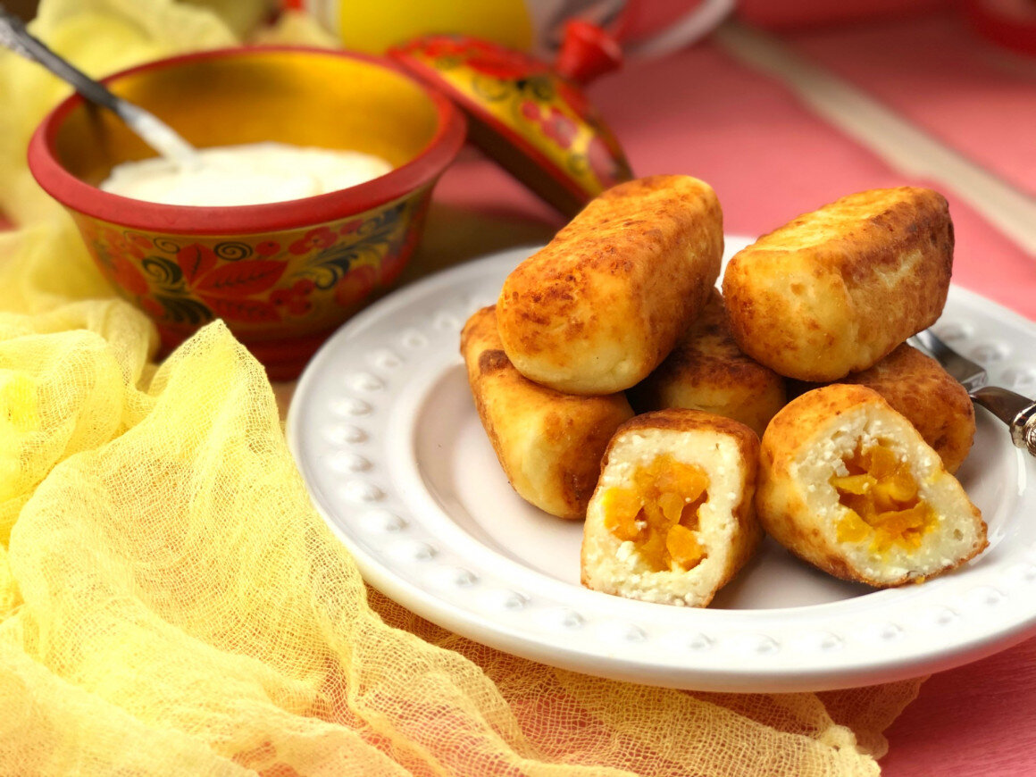 Сырники или творожники ассоциируются с домашним уютом и самым полезным десертом по версии мам и бабушек. Для того, чтобы вызвать к сырникам новый интерес, предлагаю замечательный рецепт с начинкой из сухофруктов. Немного больше ингредиентов и потраченного времени, зато никто из домашних не узнает в новом блюде простых творожников. Замени скучные лепешки на аппетитные бочонки с сюрпризом и у тебя готов домашний праздник! Особенность рецепта в том, чтобы творог не было слишком мокрым и мелко перетёртым и жирным, так как бочонки не будут держать форму. Но даже если тесто слишком жидкое, добавь чуть больше муки. Вопрос сладости индивидуален. Мои сырники не очень сладкие. Можно вообще заменить сахар подсластителем или полить готовые сырники мёдом, сиропом или сгущенным молоком. Начинки могут быть посвящены сезонным фруктам и ягодам. Особенно вкусно получается с тыквенной или яблочной начинкой. Предлагаю также заменить начинку на пирожковую. Например, яйцо с луком или зелень с чесноком. Тог