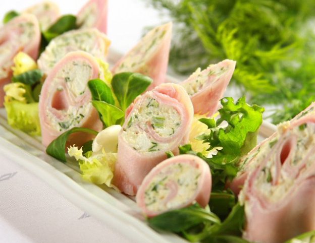 Ингредиенты: -ветчина 100 гр. -корень хрена 1/2 шт. -сахар 1 чайная ложка -уксус 3 %-й 1 чайная ложка -сметана (густая) 1 столовая ложка -листья зелёного салата -зелень петрушки и укропа -соль Приготовление: Хрен натереть на мелкой тёрке. Соединить со сметаной, заправить сахаром, солью, уксусом. Ветчину нарезать тонкими ломтиками, смазать приготовленное массой, свернуть рулетиками и выложить на листья салата. Оформить зеленью. Время приготовления 25 мин. 150-250 к/кал. Приятного аппетита! Смотрите также другие рецепты на нашем канале. 😉