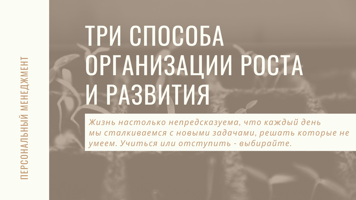 Есть три способа организации роста и развития: от проблемы, от желания, по плану