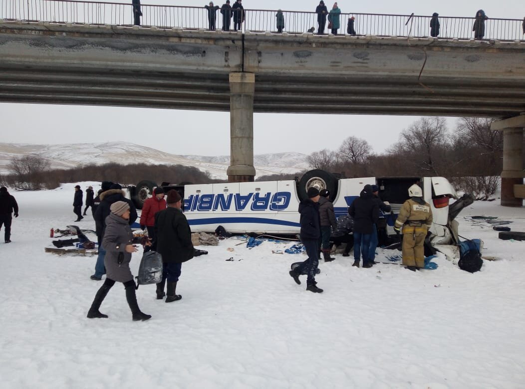а также близким погибших и пожелал скорейшего выздоровления пострадавшим. Напомним, что утром 1 декабря на трассе «Моготуй — Сретинск — Олочи» в 60 километрах от города Сретинска автобус Автобус Kia Granbird пробив ограждение, упал с моста в замерзшую реку Куэнга. В автобусе находились 41 человек, в результате происшествия 19 из них погибли, а 22 получили ранения различной степени тяжести. По некоторым данным причиной происшествия стало лопнувшее колесо.