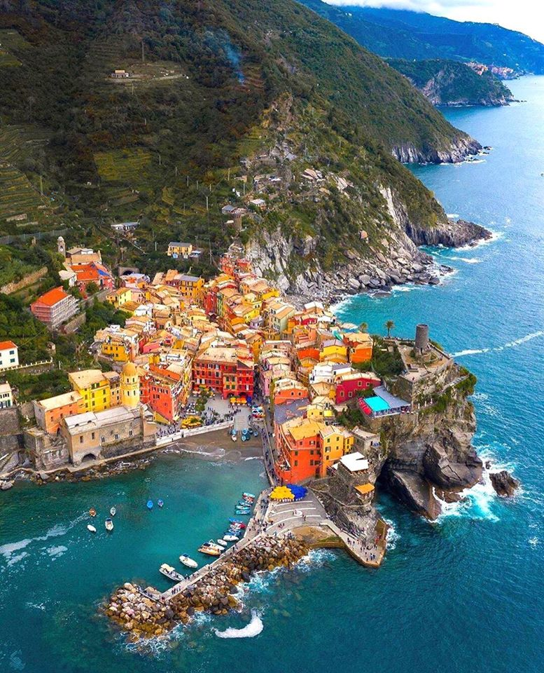 На фото - Вернацца, которая меня так восхитила. Это Чинкве-Терре, Лигурия, Италия. Вернацца, на мой взгляд, самая красивая из Пятиземелья. Знаю, многие больше любят Манаролу; да, она тоже прекрасна и, наверное, более фотогенична. Ну, у меня с Вернаццей личное. Однако, посмотрев на фото, понял то, что ранее ощущал интуитивно: уж с высоты Вернацца точно красивее. Увы, не скажу, кто автор фото - пилот дрона. У них там целая команда, недавно открыл ее для себя. Именуют себя "Дрон-зависимость" (Drones Addiction), базируются в Швейцарии. Где чьи фото не указывают.