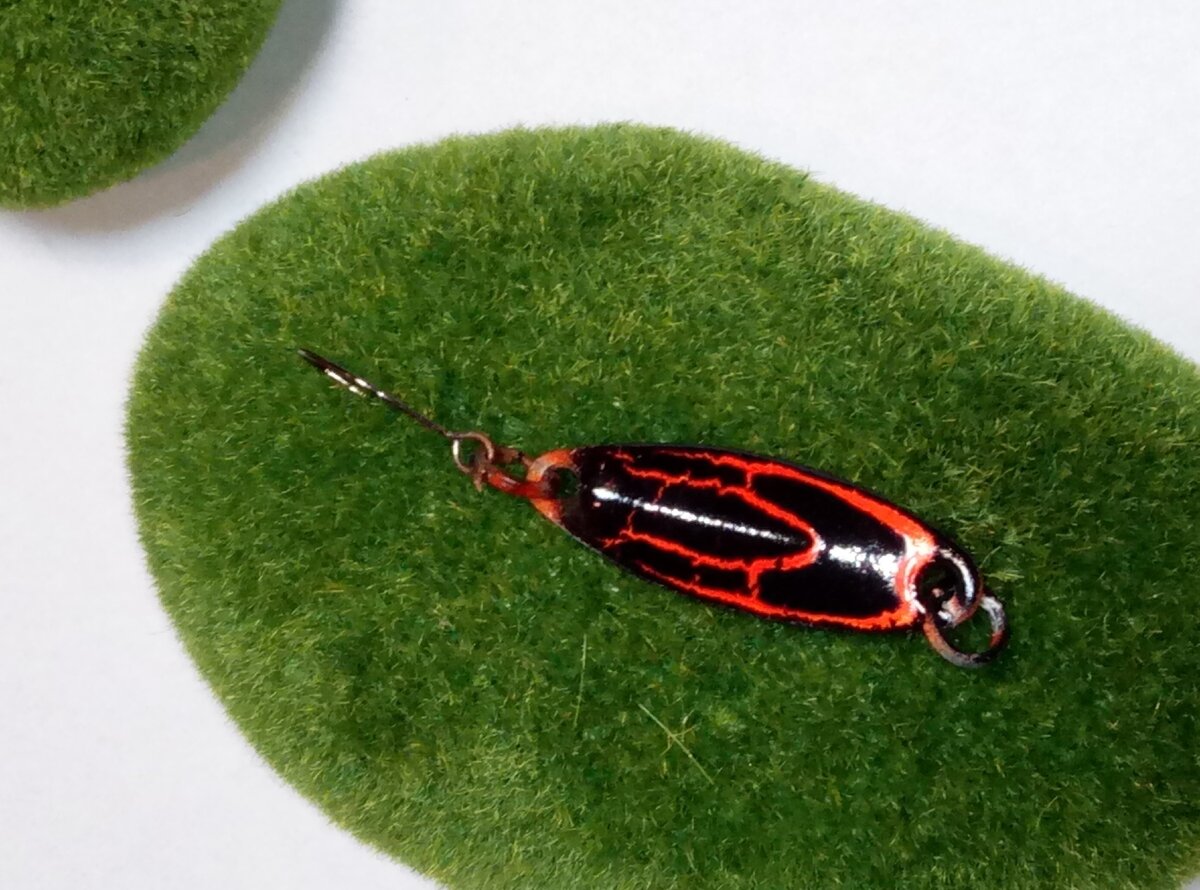 На рынке рыболовных, форелевых приманок, такое количество всего интересного, что этот вид ловли скоро станет самым дорогим. Одних силиконовых вкусных и не очень, столько, что если все брать, а это порой необходимо, без рюкзака не обойтись. А ещё воблеры, стримера и конечно номер один. это колебалки. Вот одна из знакомых форм фирмы Смит. Но её окраска была не рабочая. Приложив новый взгляд, получилось это. Раскраска повторяема, с небольшим отклонением. Но вот по уловистости, она одна из первых. Обратите внимание, на что похоже очертание этого цвета. Есть мнения? Посмотрите такую науку как Лепидоптерология. Там много интересных идей, которые помогут вам ловить форель лучше остальных. Спасибо за внимание.