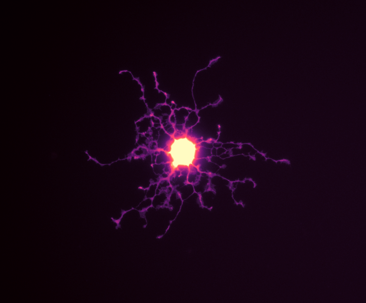 Пожалуй, олигодендроциты — одни из самых обойденных вниманием клеток головного мозга. По крайней мере, из Большой Тройки глиальных клеток, о них пишут меньше всего. И ученые, и журналисты предпочитают астроциты и микроглию. Однако эти странные клетки, своими отростками-«руками» «обнимающие» нейроны и создающие им миелиновую оболочку (один олигодендроцит способен миелинизировать несколько десятков нейронов), тоже очень важны. Схематичное изображение олигодендроцита, миелинизирующего несколько нейронов Помимо того, что эти замечательные клетки создают изоляцию аксонов, они еще и активно участвуют в нейрональном метаболизме и весьма не исключено, что в скорости и на них будут обращать внимание как на активно участвующие в работе нейронов клетки. На фото — одиночный олигодендроцит, выращенный в культуре. Снимок был представлен на конкурс NeuroArt. Credit:Michael ukz/NeuroArt Читайте материалы нашего сайта в Facebook, ВКонтакте, Яндекс-Дзен, Одноклассниках и канале в Telegram, а также след