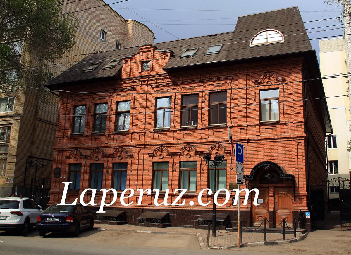 Точна дата постройки и архитектор этого здания пока не установлены. Известно, что в 1915 году здесь жил революционер М.С. Ольминский. Тогда он занимался редактированием большевистского издания «Наша газета». Теперь памятник истории регионального значения занят Управлением Министерства юстиции Российской Федерации по Саратовской области. Заметка опубликована на нашем сайте: https://laperuz.com/dom-olminskogo-v-saratove