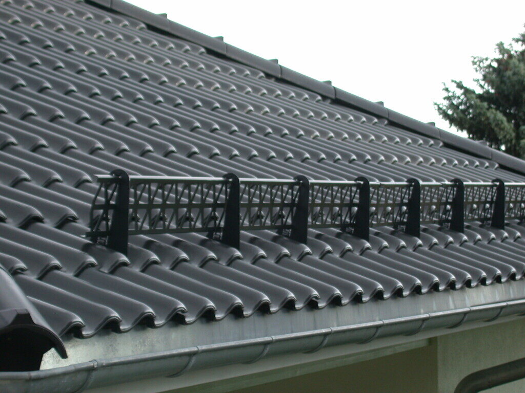 Останавливает падение и сохраняет снег на скате до момента, когда он растает под действием солнечных лучей и попадет в водосток. Снегозадержатели представляют собой небольшой барьер или ограждение, устанавливаемые вдоль кровельных свесов. Они выполняют следующие функции: