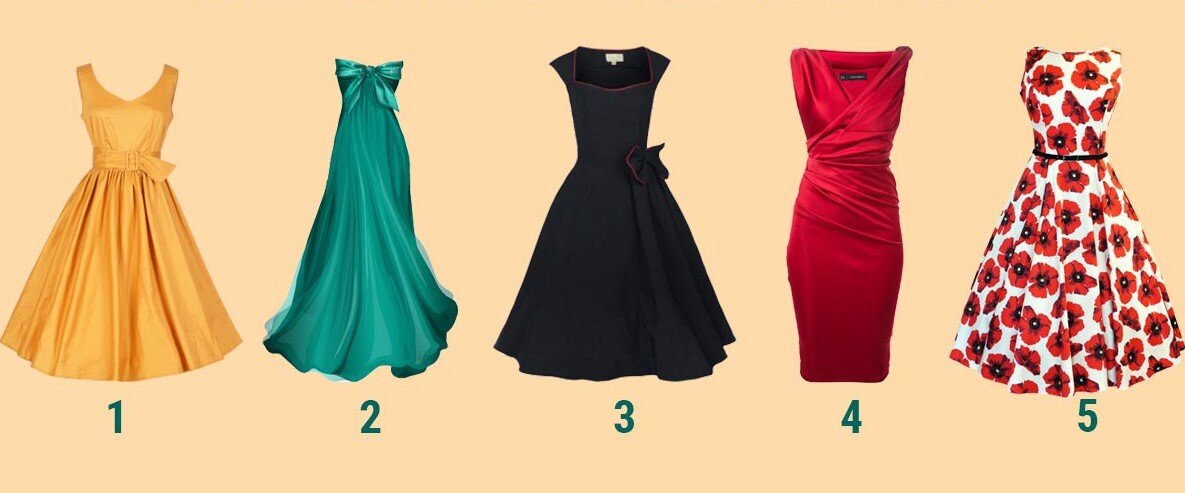 В мире много красивых платьев, и, хотя есть разные типы платьев для разных событий, у всех нас есть свой любимый стиль, который мы больше всего трогаем в наших магазинах и гардеробе. Некоторые из них предназначены для смелых дизайнов, в то время как другие предпочитают простые, но элегантные типы. Некоторым женщинам нравится носить рваную одежду, в то время как многие женщины предпочитают носить только темные. Ваша задача - выбрать один из вариантов, показанных на картинке, который вы хотели бы добавить на мгновение, а затем прочитать то, что он вам говорит. 1 Обманчивая Ваш стиль очень оригинальный и утонченный, вы действительно элегантны и женственны. Вы знаете, как хорошо выглядеть даже если вы вышли в магазин в спортивной одежде. Многие люди ценят ваш вкус и обращаются к вам за советом. Вы очень сильная женщина, поэтому у вас есть хорошие шансы найти своего партнера в течение короткого времени. Вы бы никогда не вступили в подчиненную роль, потому что вы не любите кода вами ком