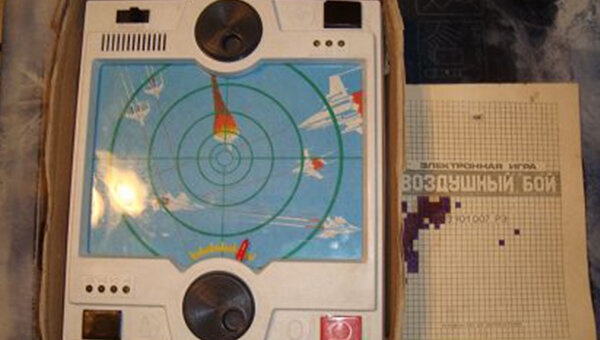 - Многие должны вспомнить данную игру "Воздушный бой". Игра рассчитана для двух детей (взрослых) которые смогут разобраться с этой игрой. Суть игры проста, один игрок управляет самолетами, а другой ракетами и пытается сбить эти самолеты. Количество ракет и самолетов было ограничено, а именно по 4 штуки. Питалась игра от 4 батареек.