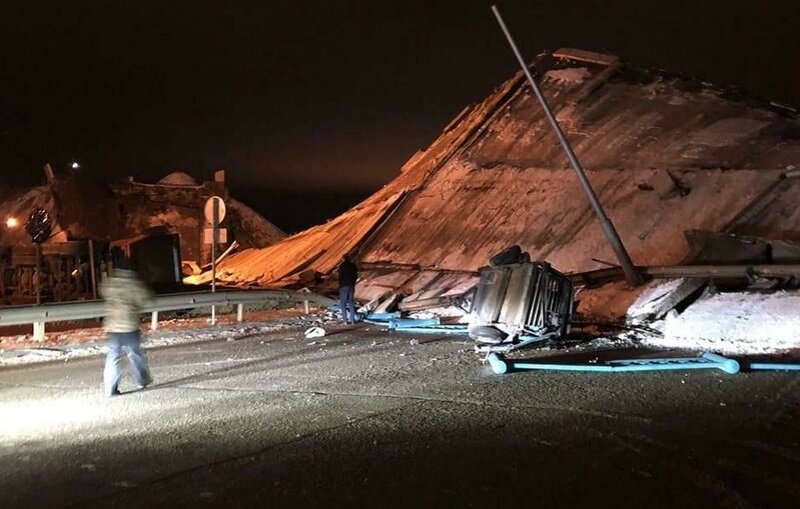Рухнул перед автомобилем: момент обрушения моста попал на видео