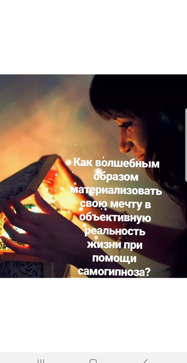 Как волшебным образом материализовать свою мечту в обьективную реальность жизни при помощи самогипноза?