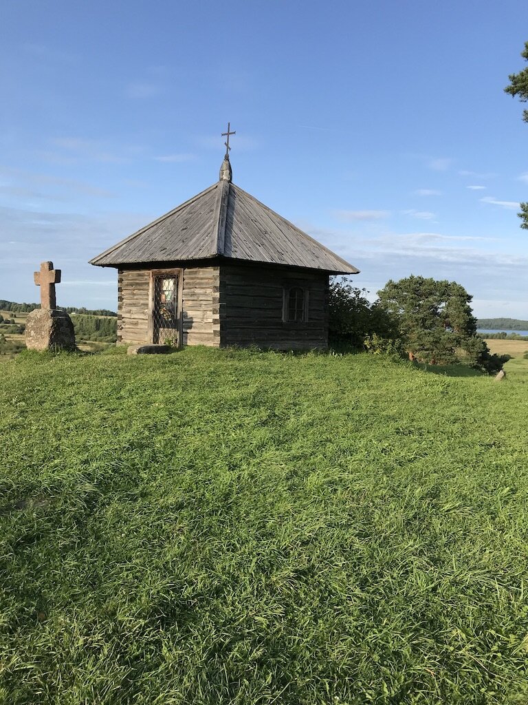 За пару десятков км до Пушгор проезжали унылый, пожухлый городок с разбитыми улицами и потрескавшимися зданиями советских времен. На ступеньках магазина - пара «синяков» в поисках опохмела, рядом ржавеющий синий трактор без колес. Как назло спряталось солнце - настроение безнадеги, упадка и клинической смерти. Но всего 15-20 мин езды - и попадаешь в другое измерение: умиротворение и энергетика.