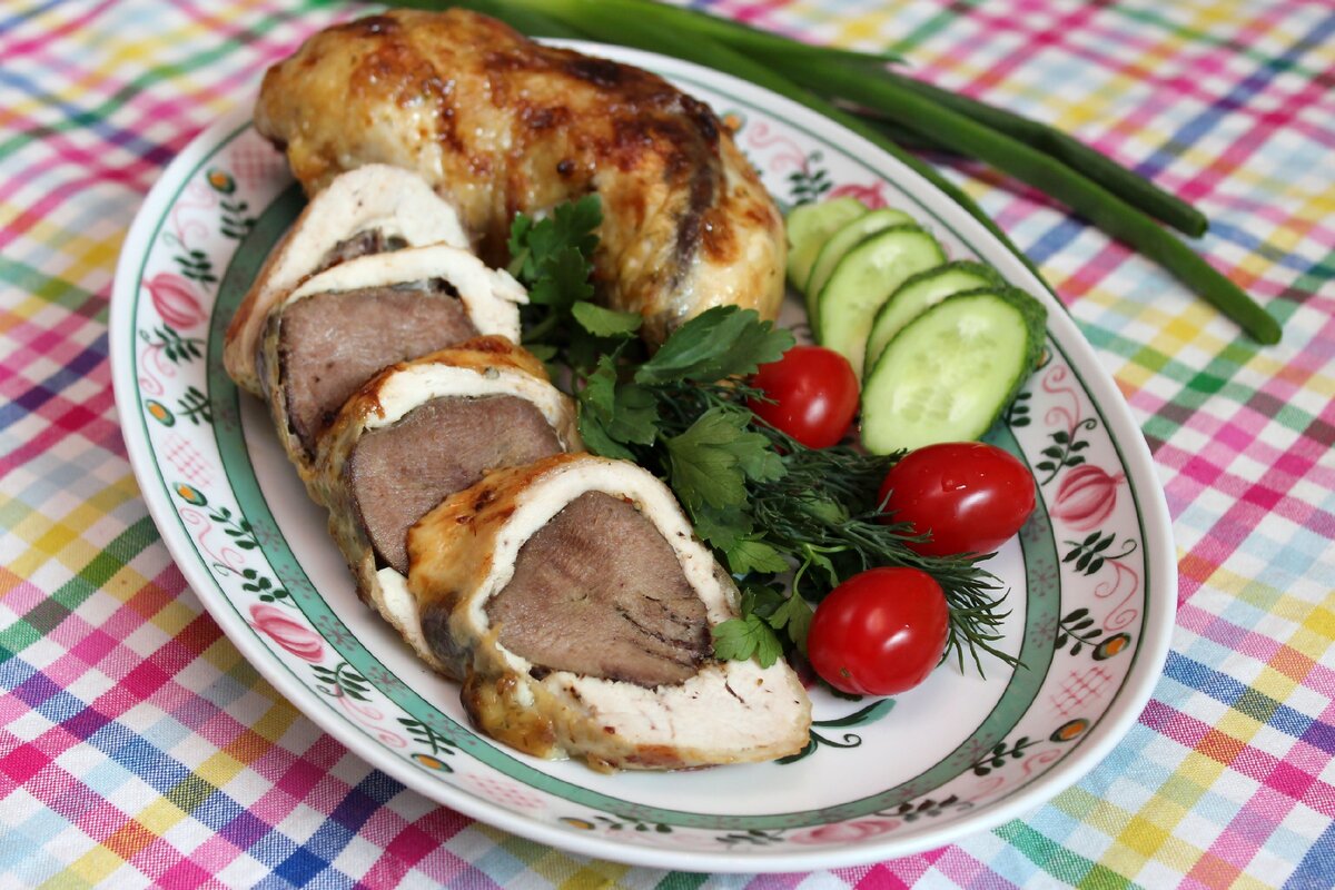 Куриный рулет с языком. Новогодняя мясная закуска.