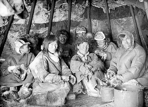 Моя бабушка Валя работала на Крайнем Севере связисткой. И я часто вместе с ней ночевала в ее зеленом вагончике. До сих пор я вспоминаю это треск раций и звуки пиу-пиу при установке связи между буровыми... Иногда северная жизнь подбрасывала бабушке такие сюрпризы, о которых она впоследствии вспоминала с заразительным хохотом. Хотя в момент сюрприза было вот совсем не до смеха. Очередной перелет с буровой на буровую для налаживания связи, пришлось прервать из-за срочного вызова вертолета совсем в другую сторону. Бабушку Валю высадили в ближайшем ненецком стойбище, и пообещали, что за ней через час прилетит другой вертолет, который и доставит ее к месту назначения. Гостеприимные ненцы (а они на самом деле гостеприимные) пригласили бабушку в чум… Далее необходимо небольшое отвлечение и краткая справка, не претендующая на научное исследование, но необходимая для элементарного понимания жизненного уклада этого народа. Ненцы- малочисленный народ Севера, живущий преимущественно в оленьих стойб
