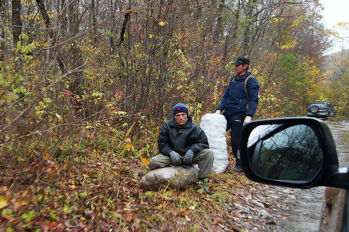 Мы ехали в сторону горы Пидан, пересекали то макро-лужи, то мини-реки. А навстречу нам из леса шли шишкари. И женщины, и мужчины. Несли мешки кедровых шишек. В каждом – около 20 кило.