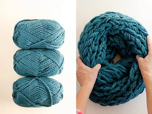 Шарф - это не только тепло, но и красиво. Сегодня сложно представить себе модницу, которая пренебрегала бы таким стильным аксессуаром. Шарфы в тренде всегда - независимо от времени года: нередко тонкие шарфики повязывают на шею даже на пляже. В холодное время года вязаный шарф способен согреть свою обладательницу и тем самым спасти от простуды. Девушки всегда хотят иметь в своем гардеробе несколько шарфиков разной фактуры, чтобы оставаться стильной даже в самом обычном пуховике. Купить качественную вещь, особенно ручной работы, - удовольствие не из дешёвых. Поэтому я решила запастись нитками и связать себе тёплый шарф сама. Поскольку я не обладаю какими-то сверхъестественными рукодельными способностями, мой выбор пал на вязку руками. Я обожаю снуды, это модно и практично, а крупная вязка всегда смотрится эффектно. Чтобы связать снуд без использования спиц или крючка, понадобится приобрести 4 мотка объемной пряжи. Я никогда не вязала такие шарфы, да и от рукоделия далека, поэтому у