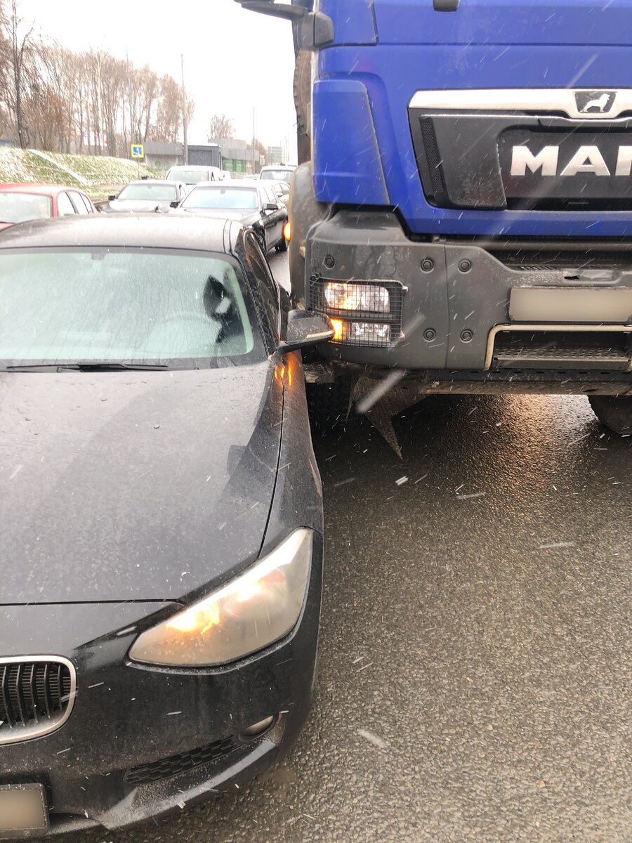 Всем привет. Сегодня хочу рассказать про кузовной ремонт BMW 118i в кузове F20. Перестраиваясь слишком активно в плотном потоке, водитель BMW, сам того не заметив, залез под самосвал. Повреждения могли быть намного серьезней, но водитель самосвала достаточно быстро среагировал и остановил машину. Казалось бы, на BMW всего лишь мятые дверь и заднее крыло, но учитывая цены на запчасти и стоимость ремонта, произошедшее весьма неприятно. Написанное далее будет полезно каждому автолюбителю. К сожалению, рано или поздно, каждому водителю приходится обращаться за помощь в мастерские (будь то ремонт авто после ДТП или замена ржавых деталей кузова), и чтобы услуги по ремонту авто были оказаны должным образом и с максимальным качеством, необходимо понимать как должен происходить процесс ремонта. Ремонт начинается с демонтажа всего, что мешает ремонту, снимается бампер (он кстати хоть и незначительно, но тоже пострадал) и левый фонарь. Старая дверь сразу меняется на новую. Крыло будет менять