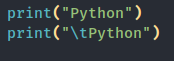 Таб(отступ от края): \t _____________________________________________________________________________________ Разрыв(новая строка): \n ______________________________________________________________________________________ Пример с \n и \t