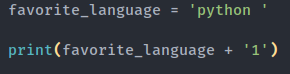 Для программиста строки 'python' и 'python ' внешне неотличимы, но для программы это совершенно разные строки. Напишем 2 варианта решения: Исходный вывод: ______________________________________________________________________________________ 1 вариант: ______________________________________________________________________________________ 2 вариант: Мы просто перезаписали переменную favorite_language, можно использовать и другое название переменной. __________________________________________________________________________________________ По аналогии: