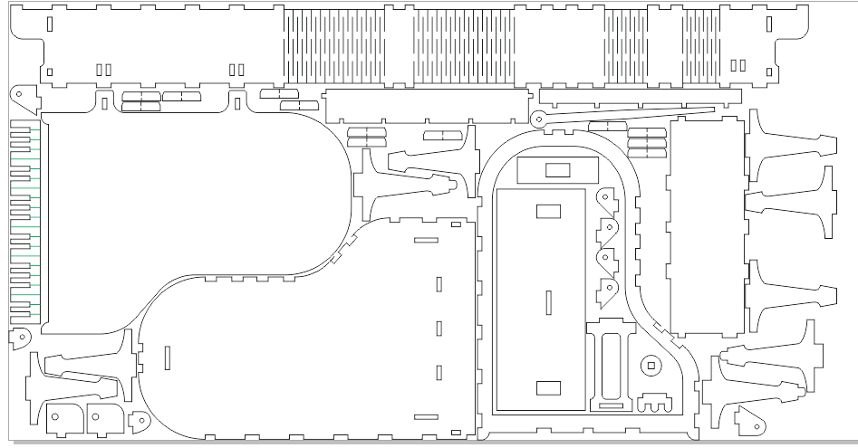 Продолжаем серию постов о сборке изделий, вырезанных по макетам, которые содержатся в нашей систематизированной базе 10 000 макетов. Сегодня сделаем красивый сувенир: шкатулку в виде рояля. В статье будет показан порядок сборки изделия без склеивания и покрытия лаком. Все детали нужно покрыть лаком до сборки, склеивать в процессе сборки. Лучше всего шкатулку покрасить в черный или белый цвет. Векторный макет выглядит так: Инструкции по сборке этого изделия не было, поэтому после того, как я вырезал все детали, меня ждал творческий и интересный вечер) Хотя порядок сборки интуитивно понятен, эта статья поможет вам собрать рояль-шкатулку гораздо быстрее. Посмотрев толщину пазов, несложно догадаться, что толщина фанеры 3 мм. Детали, вырезанные лазером: В фотоотчете — напоминаю — порядок сборки: Немного поспешил) в следующих шагах придется отсоединить 2 паза, чтобы вставить следующую деталь: Затем вставляем клавиатуру рояля: сразу правую мелкую деталь (приклеить), правый паз крышки клавиа