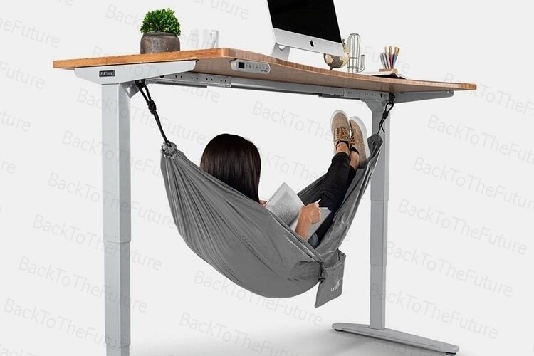 Стоячие столы - это конечно же здорово, так как они позволяют вам работать на столе, не сидя на заднице весь день. Тем не менее это тоже не выход: теперь вместо задницы напрягаются ваши ноги. И казалось бы альтернативы нет, пока не появился гамак для размещения под столом! Круто ведь?! Да, это гамак, предназначенный для подвешивания под столом, так что вы можете лежать, раскачиваясь из стороны в сторону прямо посреди офиса. В частности, он разработан для стола с регулируемой высотой, который можно настроить таким образом, чтобы под верхней частью было достаточно места для гамака, что дает вам расслабляющее место для просмотра документов, ответа на электронные письма и размышления о важных вопросах жизни. Гамак, кстати, поставляется с карманом сбоку, где вы можете хранить свой телефон и другие ценные вещи, убаюкиваясь в своем расслабляющем коконе. Этот же карман также служит сумкой для хранения гамака – просто сложите всю вещь на него, когда он не используется, так что вы можете держать