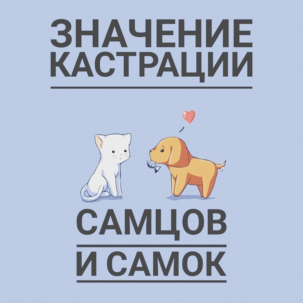 Понимают ли хозяева своих домашних любимцев (сейчас речь о кошках и собаках) зачем их кастрировать? ⠀ Безусловно, все слышали про кастрацию и большинство хозяев отводят своих любимцев на операционный стол к ветеринарному врачу, чтобы произвести данное хирургическое вмешательство. К сожалению, не все, кто не собирается разводить кошек и собак ведут их к врачу. ПОЧЕМУ РЕКОМЕНДУЮТ КАСТРИРОВАТЬ👇 ⠀ 1) Отсутствие неудобств у хозяина во время течки у кошек и сук и охоты у котов и кобелей; 2) Процент гибели животных от заболеваний, связанных с нарушением гормонального фона и обмена веществ, снижается; 3) Продолжительность жизни питомцев, как правило, увеличивается.⠀ 4) Отсутствие неприятных запахов от меток. 5) Животное может приобрести ласковый характер. ⠀ В КАКОМ ВОЗРАСТЕ КАСТРИРОВАТЬ?👇 ⠀ В России рекомендуют с 7 месячного возраста, за рубежом-с 4-5месяцев. КАК ПРОХОДИТ ОПЕРАЦИЯ СО СТОРОНЫ ВЛАДЕЛЬЦА. Подготовка к операции. Все что нужно от владельца это привезти питомца голодным. Перед