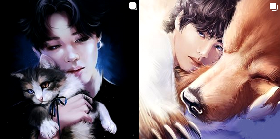 Наипрекраснейшие и великолепные Art Portraits парней из группы BTS, нарисовала замечательная, талантливая и очаровательная девушка из Санкт-Петербурга, с ником Tai.Sia. Арт портреты Ким Тэ Хёна (Ви), Ким Сок Джина, Пак Чимина и Чон Хо Сока (Джей Хоупа), в её исполнении - прекрасны. По выполнению артов, хорошо видно, что девушка вкладывает в свои творения душу. Парни на этих картинах, выглядят сногсшибательно, но не просто нарисовано, а словно это фотопортреты. Tai.Sia, рисуя их, передаёт не только поразительно внешнюю схожесть, но и эмоции своих персонажей. Ким Тэ Хёна и Пак Чимина на первом арте с животными, Tai.Sia изобразила нежными, ласковыми, любящими и заботливыми. Смотря на эти рисунки, на сердце становиться тепло, от такой красоты. Каждый созданный ей Арт, это произведение искусства. Смотря на них, испытываешь только положительные эмоции, наслаждаешься красотой и изящностью рисунков. Восхищаешься талантом и многогранностью самой Tai.Sia, ведь не каждый, рисуя человека, по фо