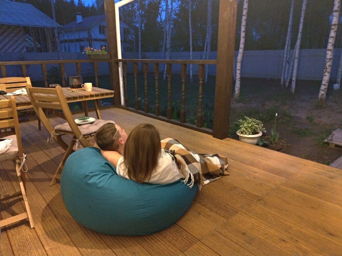 Прошло совсем немного времени как мы переехали из городской квартиры в свой дом. Постепенно привыкаем, изучаем азы земледелия и особенности содержания дома. Пишу не для заработка а для души (сейчас дзен не про это), хочется просто рассказать о прелестях загородной жизни тем кто мечтает о доме но сомневается. У каждого своя картинка идеальной жизни на земле, кто то сначала как первую необходимость строит баню и живя в ней возводит дом, кто то не мыслит участок без бассейна, а кому то нужны километры парников. Нам же нужна терраса, что за дом если нельзя утром в тапочках выйти прямо на травку с чашечкой кофе в руках?! Возможно вы будете смеяться но это можно сказать наша мечта идиота, и она сбылась! :) В летнюю пору всегда приятно повалятся на свежем воздухе. Можно и поработать иногда. Попить утром кофе. А вечером можно позволить себе чего и покрепче. Ранним утром в тишине почитать книгу. Зимой можно украсить гирляндой. Погулять по свежему снегу, вынести чайник и всякие вкусняшки к ча