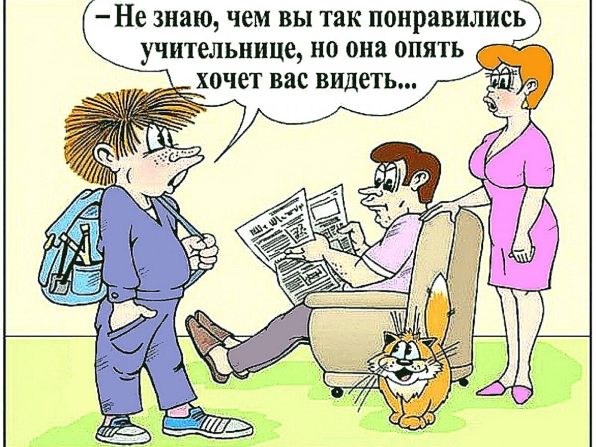 Ответная запись родителей: «Меры приняты. Вставили ему на букву «П» по первое число!». - Вовочка балуется на уроке. Взбешённая учительница даёт ему подзатыльник и говорит: