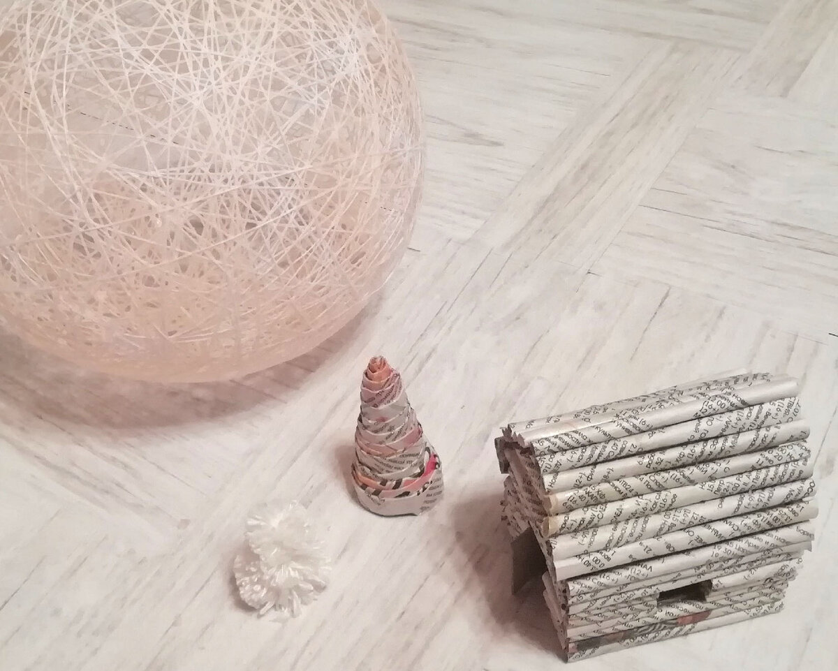 Новогодняя поделка в детский сад. Елка, снеговик, дом в шаре #2