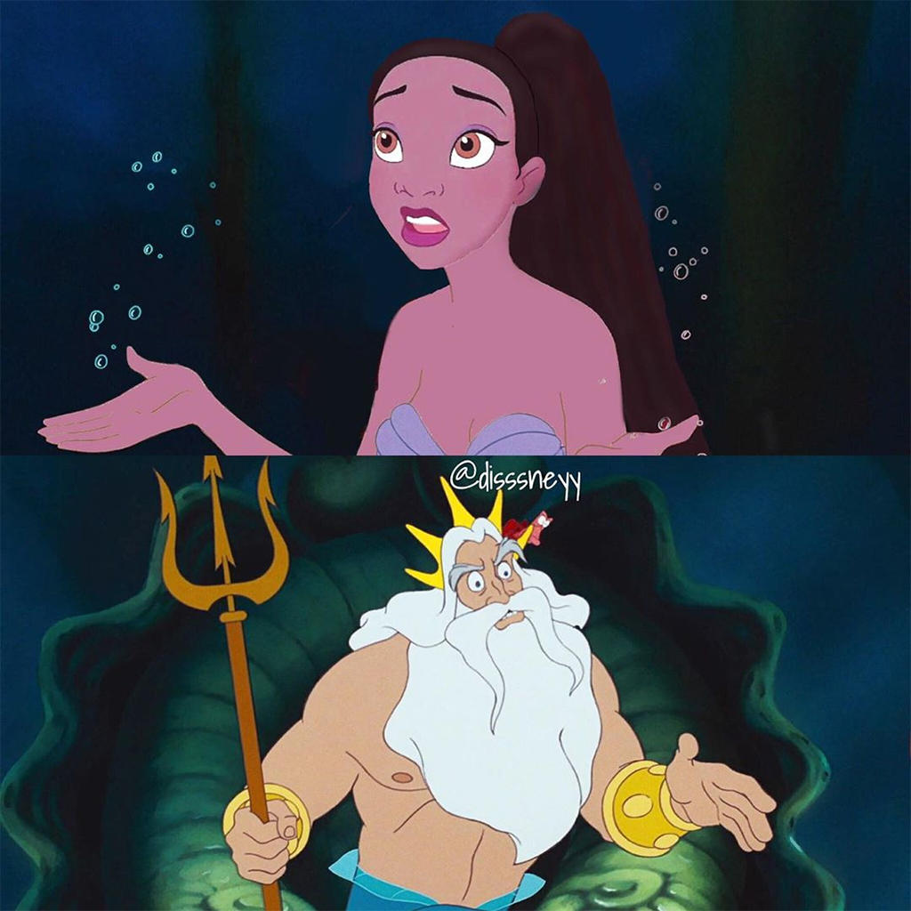 Вы когда-нибудь желали увидеть, как бы выглядели принцессы мультфильмов студии «Дисней», если бы попали в сказку друг друга? Сегодня у вас будет возможность реализовать вашу фантазию, хоть и частично. 1. Тиана и Русалочка Пока Ариэль отправилась в сказку к подружкам, Тиана решилась подменить ее на съемках мультфильма «Русалочка» 2. Ариэль и Спящая красавица Место Авроры временно заменяет Ариэль, но оригинальная версия мультфильма «Спящая красавица» все же осталось за Авророй. 3. Аврора и Русалочка Аврора же тем временем решила сменить остановку и отправилась обсуждать закадровый материал с принцем Эриком из диснеевского мультфильма «Русалочка». 4. Аврора и Ариэль Неугомонная Аврора решила примерить не только на себя главную роль мультфильма «Русалочка», но и принца Филиппа из своей сказки позвала. 5. Аврора и Филипп В поисках творческого прорыва Аврора решила так же примерить на себя костюм и роль принца Филиппа из своего же мультфильма, под названием «Спящая красавица». Малефисента не