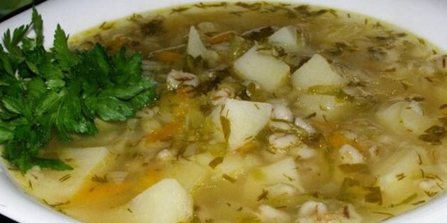 - Перловку лучше сварить или просто залить кипятком заранее и отдельно. Тогда суп будет прозрачным, а время приготовления сократится.