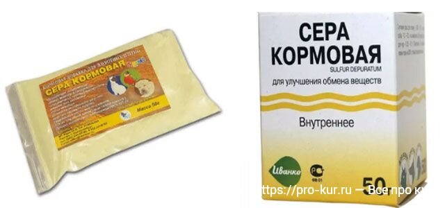 Весной и осенью нередки авитаминозы, сопровождающиеся слабостью, вялостью, отказом от корма, пассивностью, частичной потерей оперения. Такая неприятная перспектива исключается посредством скармливания кормовой серы.