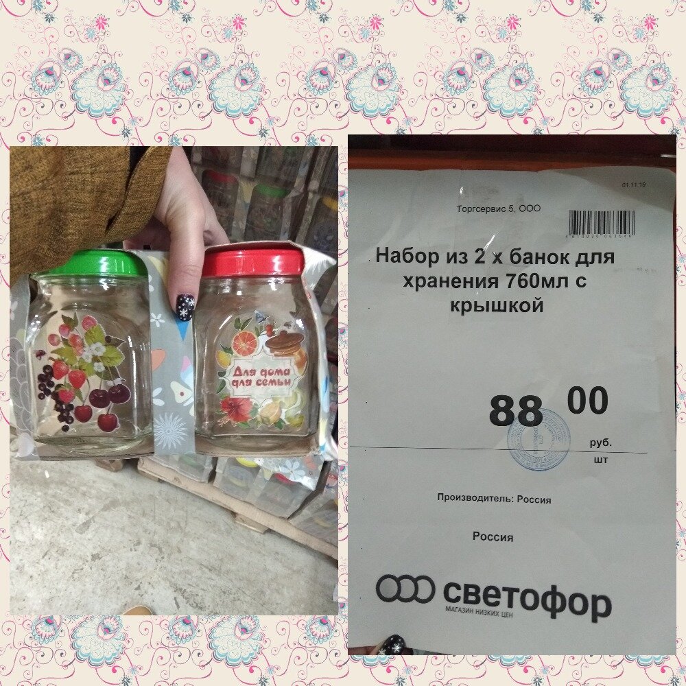 Сегодня съездила очень удачно в магазин Светофор, купила несколько вещей и при этом здорово сэкономила. Не всем нравится этот магазин, ну а я считаю, что экономить надо тоже с умом. Можно набрать говна в Светофоре и все это выкинуть, а можно там же взять товар подороже и сэкономить на этом. Первое, что мне попалось на глаза в Светофоре это набор вот таких баночек их я подумала взять на подарок. Купила себе 3 набора. Симпатичные емкости и по размеру и по форме. Вот такое вино я пробовала, только белое, очень понравилось, теперь решила на пробу взять бутылочку красного. Конфеты Аленка я люблю. В магазине они стоят 320 руб, а здесь ощутимо дешевле. Термос я решила взять тоже на подарок, стоит совсем недорого, конечно не думаю, что он отлично и долго держит температуру. Ну да я же не на юбилей подарок покупаю)) Папе взяла, вот такую меховую оплетку на руль. Мне она просто понравилась и папе я думаю тоже понравится. Вот такой винный напиток я пробовала у подружки, мне понравилось. Решила