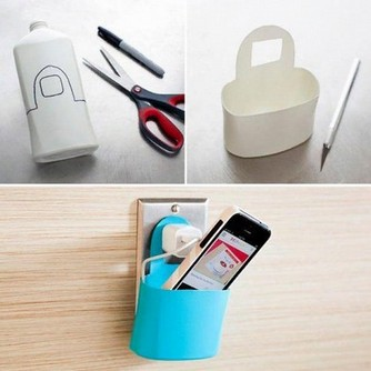 Каждый заслуживает второго шанса, включая использованные пластиковые бутылки. Пусть они превратятся во что-то новое и полезное. 12. Держатель для зарядки телефона. Это важно для всех, у кого есть мобильный телефон. Хватит класть свое любимое средство связи на пол, если рядом нет полки. Сделайте держатель для телефона на время зарядки. Найдите бутылку подходящего размера, очистите от предыдущего содержимого и вырежьте форму, которая вам по душе. Хорошо подойдет бутылка из-под геля или шампуня. Ваш телефон скажет вам спасибо. 11. Крышечка для пластиковых пакетов. Как же бесит, когда пытаешься развязать узел на пакете, который сам же и сделал, чтобы не рассыпать содержимое. В итоге просто разрезаешь или разрываешь его. Знакомая ситуация? Тогда сделайте крышку для пластиковых пакетов и скажите нет раздражающим узлам. Отрежьте верх бутылки с широким горлышком, проденьте открытый пакет в отверстия, заверните за горлышко и закройте крышку. Теперь можете открывать и закрывать пакеты сколько у