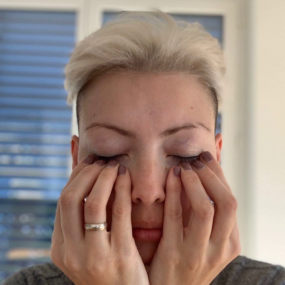 Что же делать, если есть мешки под глазами? Чаще это связано с отечностью и застоем жидкости в этих местах. И поэтому упражнения будем делать на эту зону.