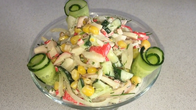 Здравствуйте дорогие читатели, салат из морепродуктов не только вкусный, красивый и ароматный, он также очень полезный. Овощи снабжают наш организм полезными витаминами и минералами, а морепродукты богаты йодом что очень положительно сказывается на работе щитовидной железы. Так давайте его сегодня и приготовим, тем более все нужные ингредиенты можно приобрести в ближайшем супермаркете. Можно подумать, ну что сложного в приготовлении салата, собрал ингредиенты, нарезал и все салат готов. Но не тут-то было, есть некоторые нюансы в подготовке ингредиентов. Об этих нюансах многие забывают, потому и получаются не салаты, а так себе, овощная нарезка. Так что будьте внимательны читая и готовя по рецептам, обращайте внимание на мелочи и всякие нюансы. Например, наш сегодняшний салат содержит кальмаров, а кто не знает, кальмара нужно варить буквально 2 минуты, так как если проварить их дольше они станут по консистенции как резина и мало кто одобрит ваш салат, ну разве что бы не обидеть. Так