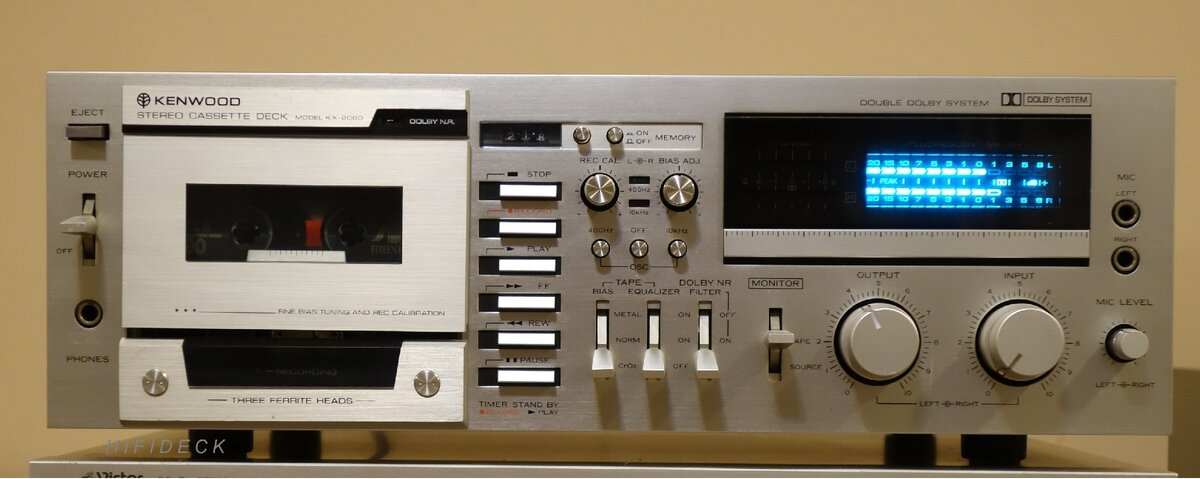 Кенвуд, несомненно известная фирма и конечно внесла свою лепту в развитие аудио. Однако, в магнитной записи Кенвуд выделить сложновато. Кенвуд, в своё время начал бодро производить катушечные магнитофоны, но, почему-то быстро свернул их выпуск. Кассетников было выпущено немало, но все они были, ну скажем так, на уровне среднего Hi-Fi. Их, к сожалению нельзя поставить в один ряд с топовыми Наками, Тиками или Соньками. Но, благо всюду бывают приятные исключения. И это исключение, кассетная дека КХ-2060. Без преувеличения, лучшая дека созданная Кенвудом. Кстати, иногда попадают любители магнитной записи, которые считают, что лучший Кенвуд, это КХ-1100, дека с интересным дизайном и выражаясь современными понятиями, имеющая отличное соотношение цена-качество. Но, как правило, они либо просто не знают о выпускавшейся заметно раньше 2060, которая довольно редка, ну или, имеют 1100 и следуют пословице "каждый кулик своё болото хвалит"))