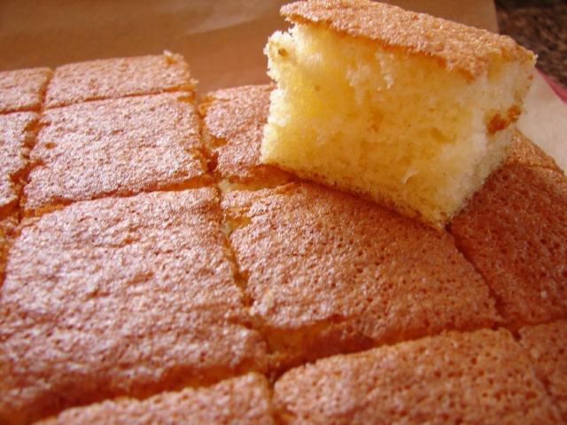 Продукты: яйца - 5 шт. Сахар - 1 ст. Мука - 1 ст. ванилин (по желанию) Приготовление: Включаем духовку на 170 градусов. Яйца, не разделяя помещаем в чашу миксера, сразу засыпаем сахар, ванилин. Взбиваем на максимальной мощности 5-10 мин. (может понадобиться больше времени, зависит от миксера, у меня 5 мин и на стационарном и на ручном). Масса очень хорошо увеличивается в размерах, примерно в 3-4 раза , становится густой, тягучей и белой. Просеиваем муку и аккуратненько ложкой (лопаткой ) перемешиваем сверху вниз. Форму застелить низ бумагой, смазать всю (и низ, и бока маслом), припылить хорошо мукой. Выливаем тесто в форму, у меня чуть больше половины формы и обязательно сверху форму затягиваем фольгой (я фольгу смазала маслом изнутри) и ставим в разогретую духовку. Печем 170 градусов 25-30 мин, затем убавляем 150 градусов 25-30 мин. В общей сложности 50-60 мин свободного времени, главное - в духовку не заглядывать. Фольга отходит (с маслом) легко. И вот пушистый, вкусный, мел